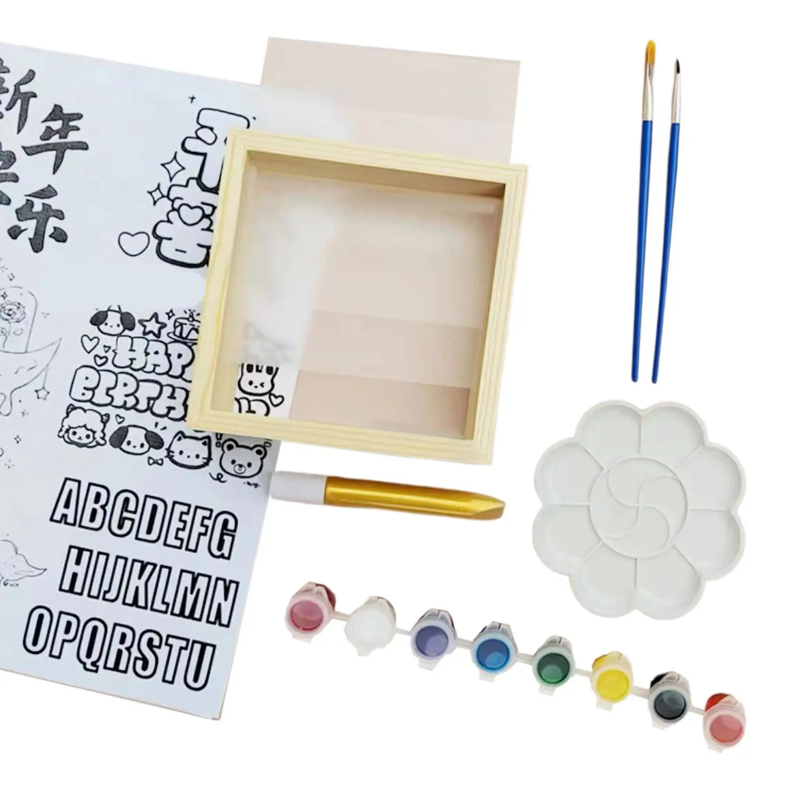 Diy Glass Painting Material Set With 6 Colors Acrylic Paint Palette And Brush Handmade Drawing Activity Toy For Boys Girls